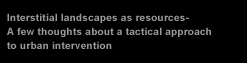 Des paysages interstitiels comme ressources [1] Quelques réflexions à propos d’une tactique d’intervention mobilière. Luc Lévesque Le paysage est avant tout une construction culturelle du regard issue de notre interaction sensible avec l’environnement. Réduire le paysage à une modalité idéalisée de la nature ou du patrimoine bâti, c’est oublier que son histoire a été celle d’une colonisation progressive des confins les plus inhospitaliers : forêts, montagnes, mers et déserts n’ont pas été toujours considérés comme paysages. Aujourd’hui, les véritables territoires à explorer ne sont-ils pas ceux que l’on ne voit plus à force d’y être immergé : ces contrées extensives et aléatoires de l’urbain ? Au moment où on ne sait plus très bien comment saisir les phénomènes d’urbanisation qui bouleversent la condition des villes contemporaines, le paysage peut constituer un mode d’exploration privilégié pour apprivoiser les transformations en cours si on ne le limite pas à des images préconçues [2] . Ce sont entre autres les différentes explorations esthétiques contemporaines qui en apprivoisant « le chaos » du monde urbain maintiennent ouverte la médiation paysagère, libérant du même coup de nouveaux points de vue sur la ville et des manières différentes de la vivre. Aborder ainsi le paysage comme laboratoire, tend notamment à remettre en question la primauté de l’objet architectural au profit d’un élargissement des registres d’interventions plus compatible avec la complexité de l’écoumène urbain. C’est dans cette optique que les paysages interstitiels nous intéressent. Le propre de l’interstitiel est étymologiquement de « se trouver entre » les choses. Se référant à la notion d’intervalle, il renvoie de même à un « espace de temps ». L’interstice a rapport à la porosité. Le pore est cavité et passage, lieu propice au développement de processus qui échappent au contrôle et contaminent l’ordre statique de la représentation. Communément utilisé dans ce sens en sociologie urbaine pour désigner des lieux d’altérité et de pratiques informelles [3] , l’interstice peut être défini, d’un point de vue urbanistique, comme un espace sans affectation précise, immiscé pour une période indéterminée entre des configurations fonctionnellement déterminées. À la fois fait urbain concret et vecteur théorique, l’interstitiel s’associe donc à un ensemble conceptuel varié qui appelle, en cette période charnière, à penser différemment les modalités architecturales et paysagères du projet urbain [4] . Cette géographie interstitielle de la ville peut aussi être envisagée comme points de résurgence potentielle du sauvage. Si le paysage ne se réduit pas aux éléments naturels, si l’interstitiel ne se réduit pas au résiduel, le monde sauvage, dans le même sens, ne se résume plus à l’entité lointaine et menaçante par rapport à laquelle la cité faisait jadis rempart. À l’inverse, la nature sauvage d’autrefois serait passée depuis longtemps du statut de menaçante à celui de menacée. Un autre type de sauvagerie plus ambiguë tendrait donc aujourd’hui à réémerger, suivant de nouvelles modalités, au cœur même des agglomérations métropolitaines. Au confluent de la brutalité moderne (infrastructures industrielles et commerciales, emprises routières et autoroutières, tabula rasa immobilière, etc.), de la colonisation rudérale (flore et faune) et de l’urbanité (appropriations collectives, pratiques conviviales et vernaculaires, etc.), la sauvagerie urbaine [5] nous confronte à des environnements bruts incarnant les contradictions troublantes que nos sociétés tendraient ailleurs à réprimer ou à masquer. Au moment où la virtualisation de nos rapports au monde s’accentue, la condition interstitielle nous offre notamment la possibilité d’apprendre au contact de la réalité sans fard qu’incarne cette impure et paradoxale sauvagerie. Suivant cette perspective on peut considérer les paysages interstitiels de la ville à la fois comme des ressources à expérimenter pour ce qu’ils offrent et comme des milieux favorables à l’expérimentation. Cette observation appelle notamment des approches d’intervention qui ne chercheraient plus nécessairement à imposer un ordre englobant, mais qui viseraient plutôt à infléchir les dynamiques en présence avec un tact proche de celui de l’acupuncture. La ponctuation mobilière constitue un exemple de tactique d’intervention s’inscrivant dans cette voie [6] . Le projet Hypothèses d’amarrages initié en 2001 à Montréal par SYN- explore concrètement ce cadre conceptuel. Partant du constat qu’un très grand nombre de résidus spatiaux sont produits et abandonnés par l’urbanisation contemporaine, qu’un grand nombre d’entre eux ne sont pas voués à être développés dans un avenir proche et qu’une bonne part de ces sites recèlent des qualités spatiales et paysagères propices à une occupation temporaire, le premier volet du projet Hypothèses d’amarrages propose l’implantation impromptue d’une vingtaine de tables à pique-nique sur une constellation choisie de sites résiduels de la région métropolitaine de Montréal. Privés ou publics, ces sites sont de natures diverses : friches industrielles, lots vacants, résidus autoroutiers, espaces verts, etc. Il s’agit là d’exploiter pragmatiquement les potentiels d’espaces oubliés, banalisés ou sous-utilisés pour offrir aux citadins de nouvelles connections à leur environnement. Des vingt tables installées sans autorisation à l’été 2001, plus de la moitié sont toujours, près de deux ans après, sur leur site d’origine; celles qui ont disparues étant fort probablement utilisées en d’autres lieux. Le mobilier a été maintes fois employé en art comme thème d’explorations plastiques minimalistes 